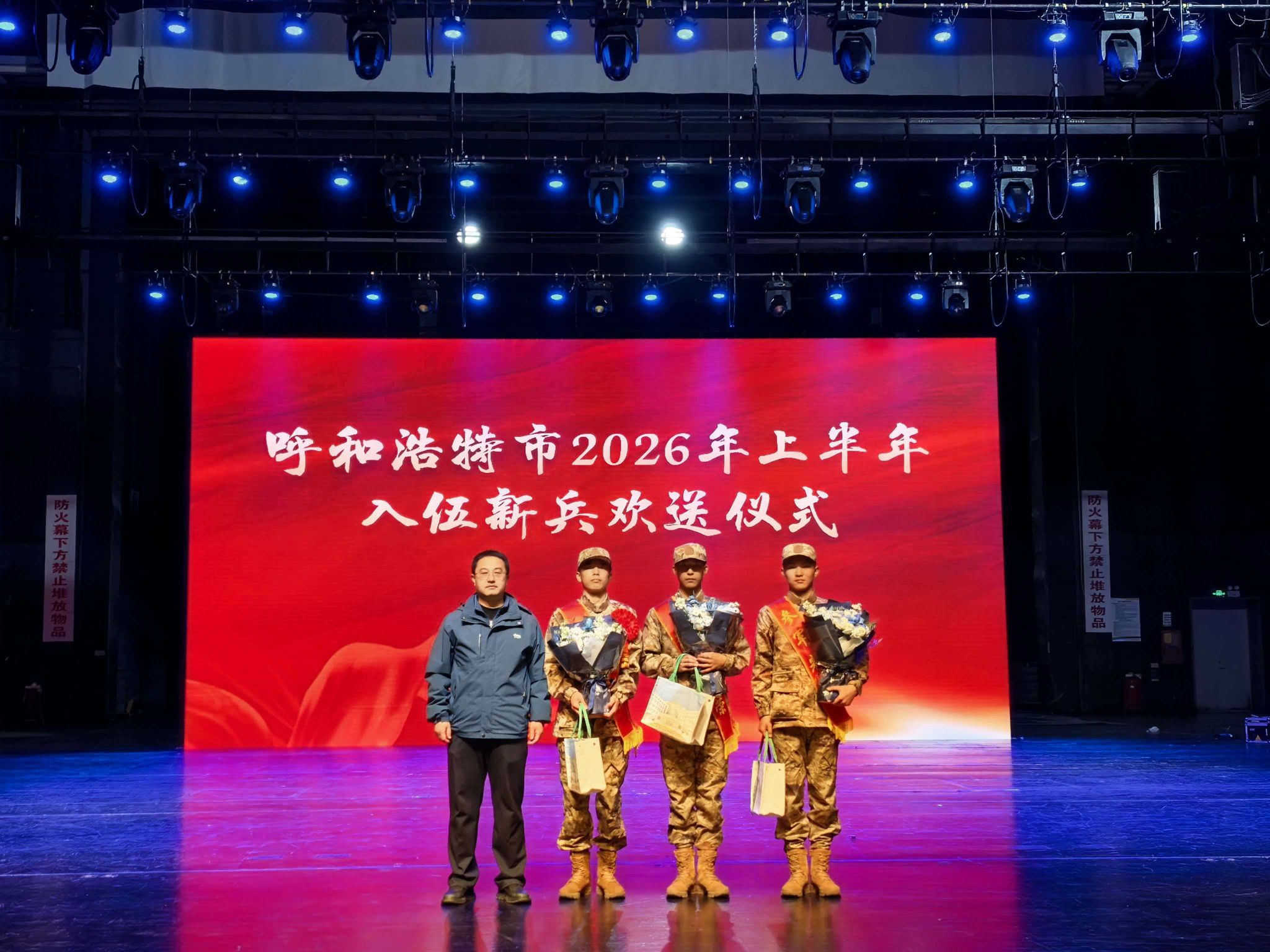 春风浩荡启新程,热血青春献国防。3月17日,呼和浩特市2026年上半年入伍新兵欢送仪式在乌兰恰特大剧院隆重举行,我校学子身着戎装、胸佩红花,与全市新兵一同整装待发,即将奔赴军营,以青春之我、奋斗之我,投身强军兴军伟大实践。